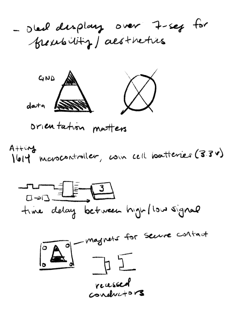 What does it do? I designed a set of blocks that can help kids learn the mapping from their count list onto physical sets of objects, which is one of the biggest conceptual leaps in early math learning. Each block has a small screen that shows its identity in relation to the set, and has connections on either side to communicate with other blocks nearby.