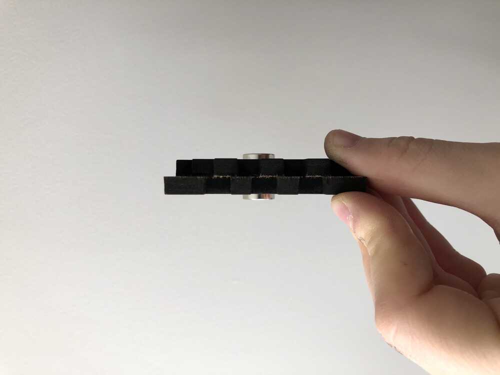 When the magnets were used against each other they were so strong that I would never want to give it to a kid because it would be too hard to pull apart and might pinch their hand, so I did some tests and realized that a magnet inside each box was enough to draw them together and make a good connection but it was still easy to manipulate them.