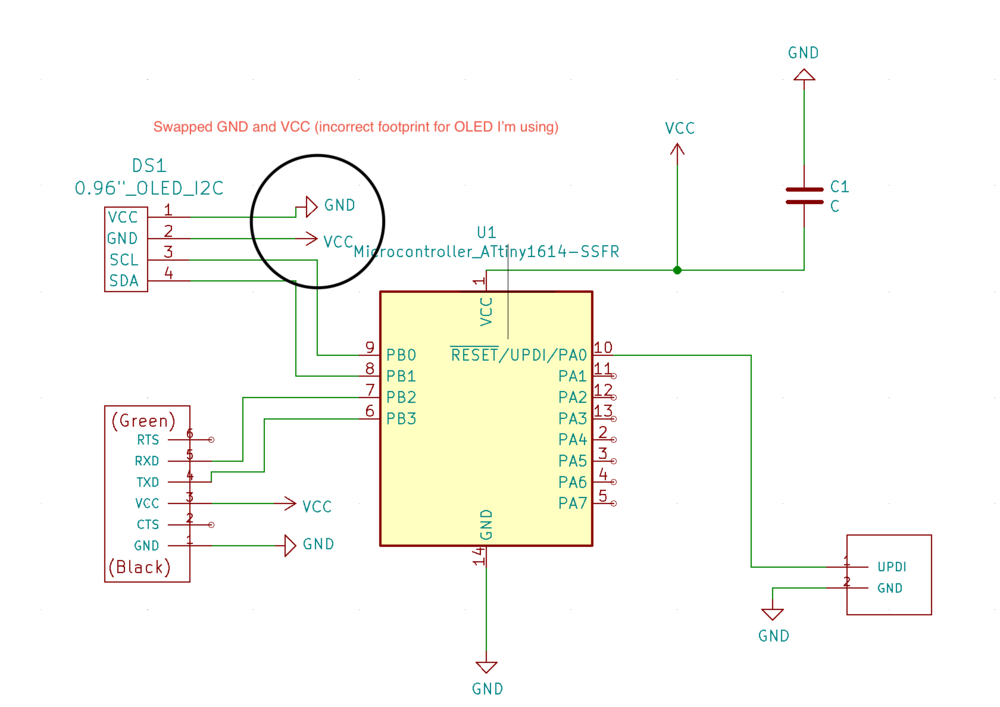 I started by updating my OLED circuit board from last week to fix the swapped VCC and GND pins
