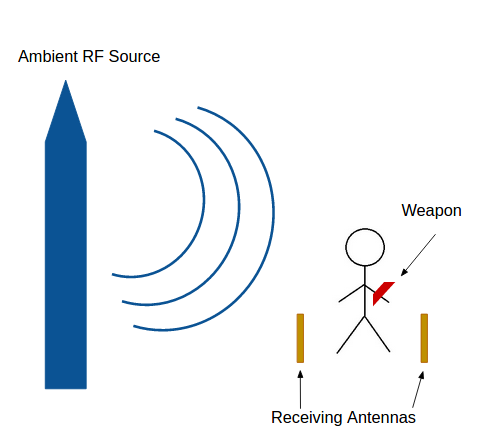 As such, my proposal is to envision a system of distributed, underground "scanners" which use ambient RF generated by future 5G cellular broadcasts to scan passersby to determine the presence of guns, small explosives, or other potentially lethal weapons. Because 5G is expected to operate at the region of the electromagnetic spectrum that is on the order of a few mm or 1 cm, it can potentially resolve objects of interest. While passive millimeter-wave imaging technology exists [1], I believe that the addition of ambient sources will increase the ability to image