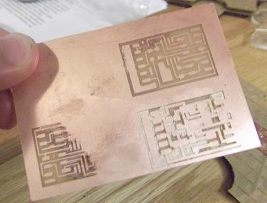 My first round of milling, however, was proof that just because you've used a machine for multiple weeks, it doesn't mean that you can just skip steps like a pro. I ended up cutting my traces unevenly (and then too deeply); I had to stop and remember to zero my endmill before each cut, even for cuts on the same piece of board. (I have put up evidence of my blunder below.)