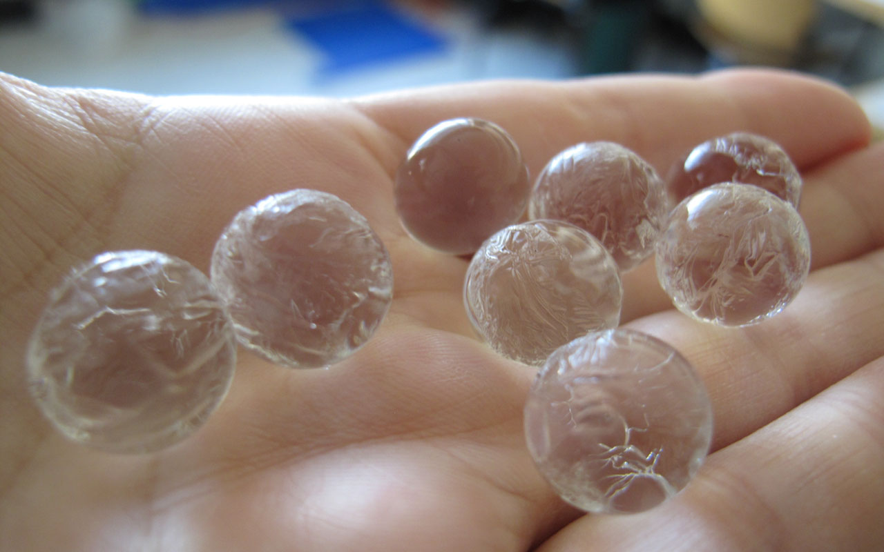 For the 3d printing week I made a cheese by booleaning spheres from a shape. These water beads could be the analogue spheres for me to boolean out of a casting and moulding process. What is more interesting is that I can vary the number, density, and size of the spheres to create porosity. Here are some more expanded water beads with texture.