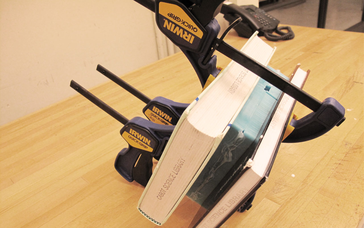 I sealed the two parts with hot glue to prevent leakage, then I used two books as backings to hold the moulds rigid. Of course when I started pouring I covered the books up. This is just a demonstration.