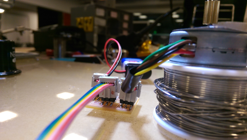 Most of the output devices week was spent debugging the Hello World board for the unipolar stepper motor. Many hours just to learn that 9 Volt batteries registering less than 9V are "almost" dead and stepper motors will work very weakly and inconsistently.