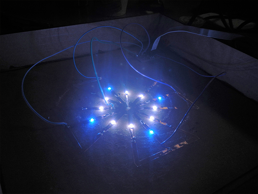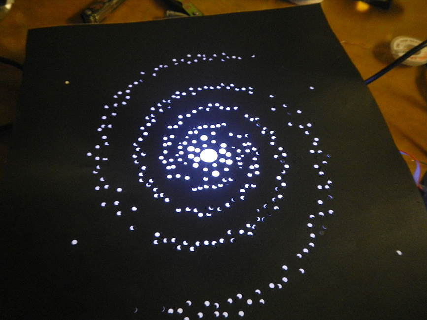 And of course, the final programming process: creating a sin function that would "rotate" LEDs in four different clusters, hopefully creating a sensation of movement