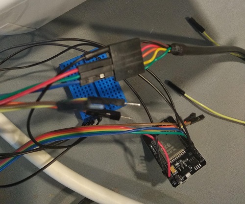 (i later learnt this image is not entirely correct because I had to use the 5v instead of the 3.3v) Using this image i was able to connect the FTDI and the ESP32 together. It did take me a while to figure out exactly which wire from the FTDI was connected to which port on the board. So finally when the light came on I was very happy.