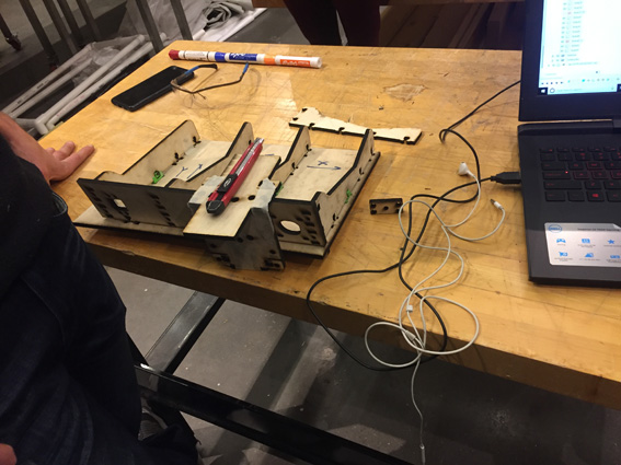 As different tasks were distributed we documented most of the process, we created a Dropbox folder for everyone to upload their videos and photos and in this way documentation was more efficient as we couldn't see all of what was happening all the time. Me and Po Hao helped assemble the first prototype for the machine and solved some minor issues with the motor piece which was having some friction with one of the fasteners.