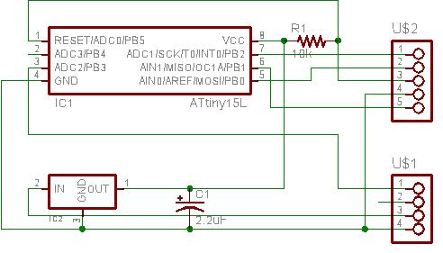 | 1.Design Description | Use AVR Tiny15L, which is a low-power CMOS 8-bit RISC microcontroller, to build up a hello world application. The parellal port sends out machine codes which are stored in flash memory of the microcontroller. The serial port listens to the output of Tiny15L. |