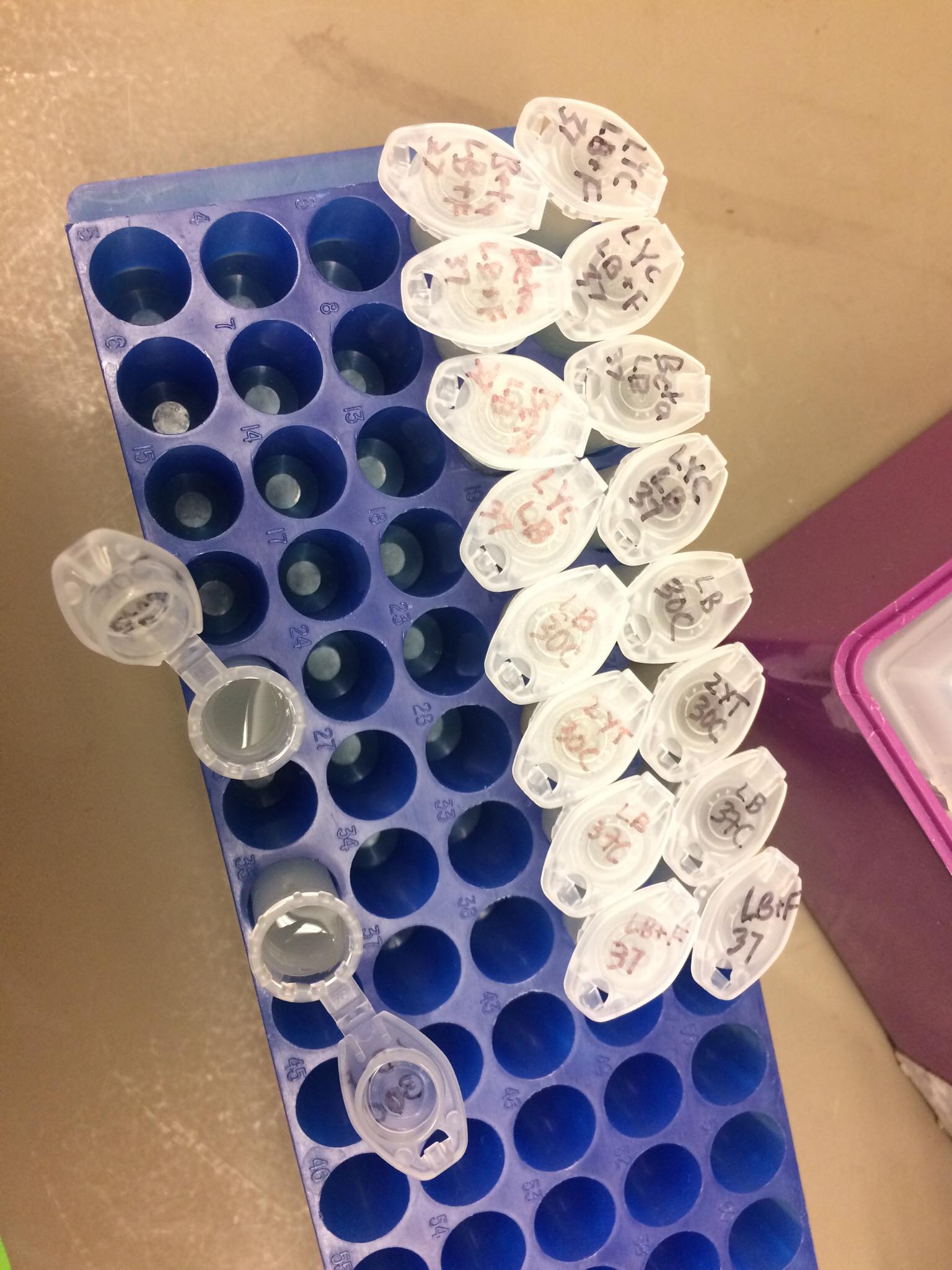 1. SET UP OVERNIGHT CULTURES WITH 12 CONDITIONS, DUPLICATED.