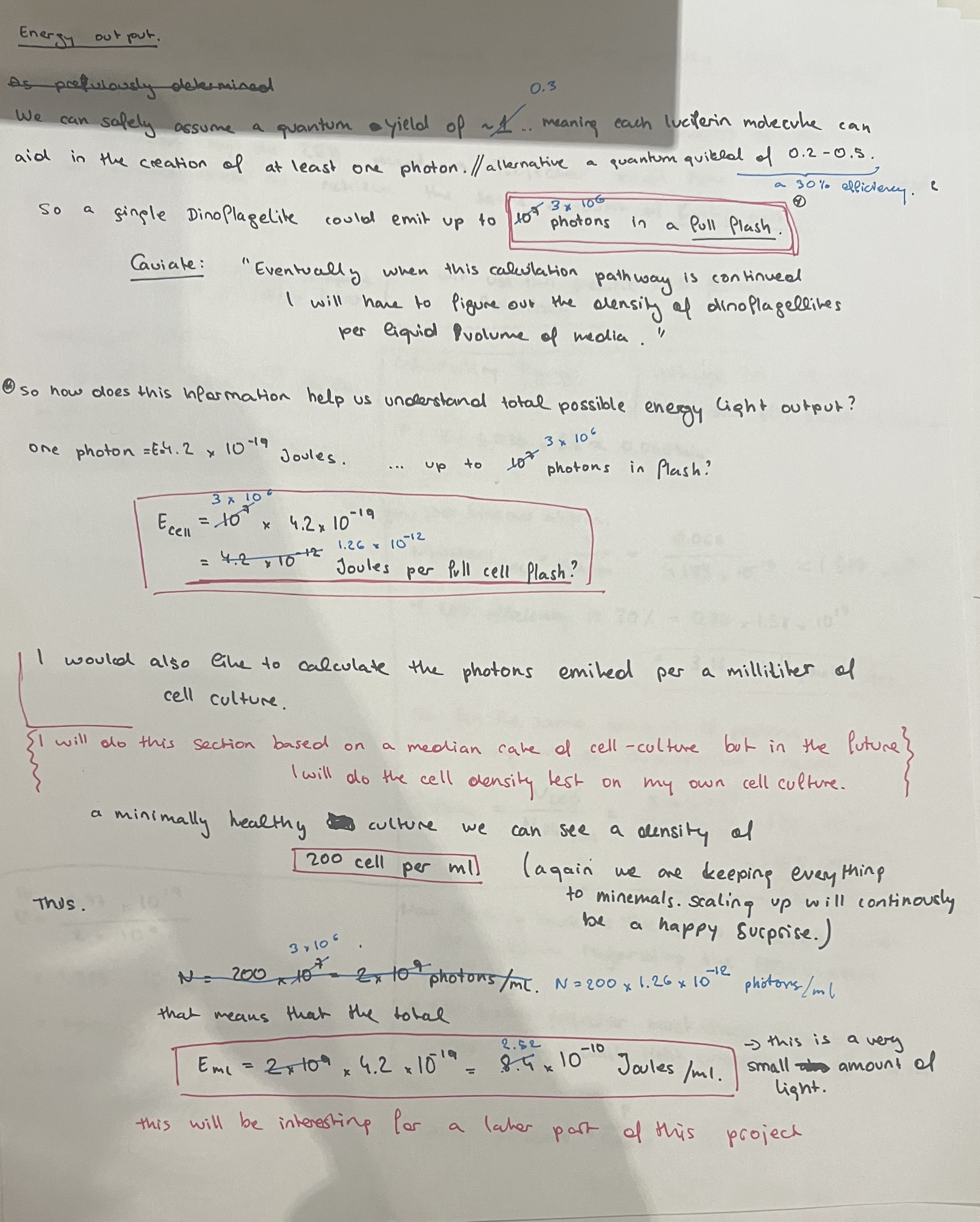 Prior to the calculations I have also attempted to observe the organism in a low-cost field spectrometer, which was semi successfull. In the days following the final, now that I am back in the lab physically I would like to make adjustment to the low-cost spectrometer so it is more suitable to documenting the observations made through it.