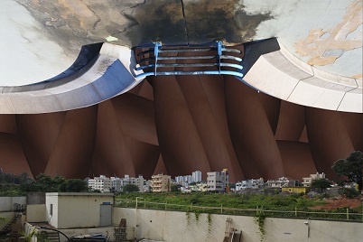 In this image we can see a houses/apartments constructed over what was once the Hesaraghatta lake in the outskirts of Bengaluru. The upside down platfrom is the reclaimed sea-side in Beirut which was recently cordoned off for developemental activities.