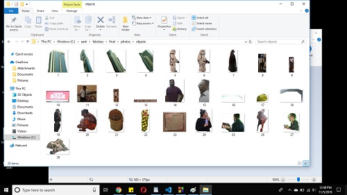 extract objects from within many images using semantic segmentation (for example: the tree, the house, the human, the car) and place them together according to the layout of a standard scenary