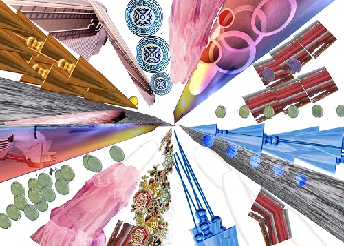 The illustrations usually very literally attempt to 'decode' the infrastructure that makes a site what it is or connects many sites into one frame. They are however heavily crafted: