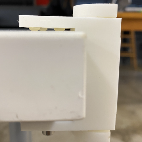 However, after taking off the print I found a lot of things that I would change on a different iteration. In my CAD, I allowed for 1 mm of tolerance between the two rotating pieces. But, the actual print definitely expanded into the tolerance area. I'm not sure if it was the heat from the extruder or just the filament expanding, but when I took the piece off the bed, it didn't rotate. I had to use a vice gripper to force the pieces to rotate.