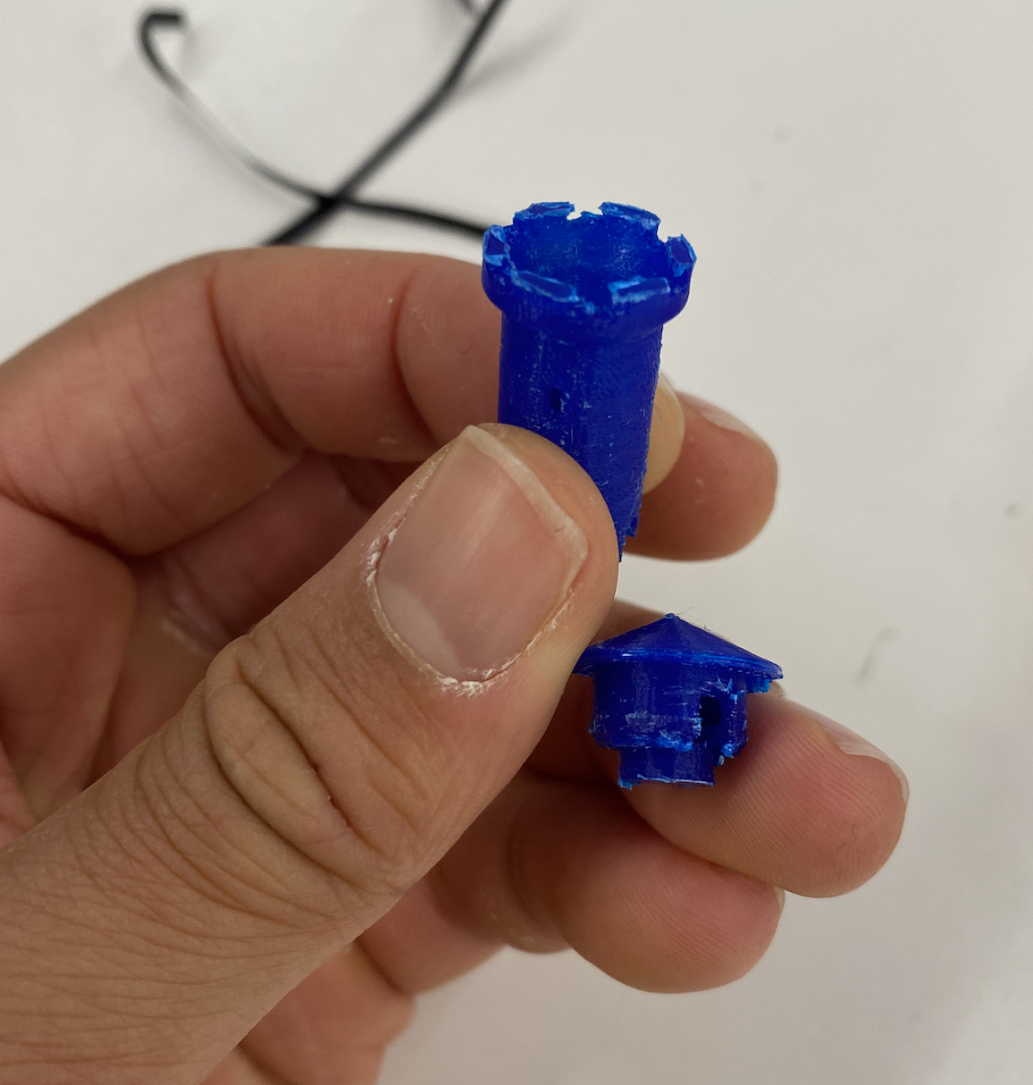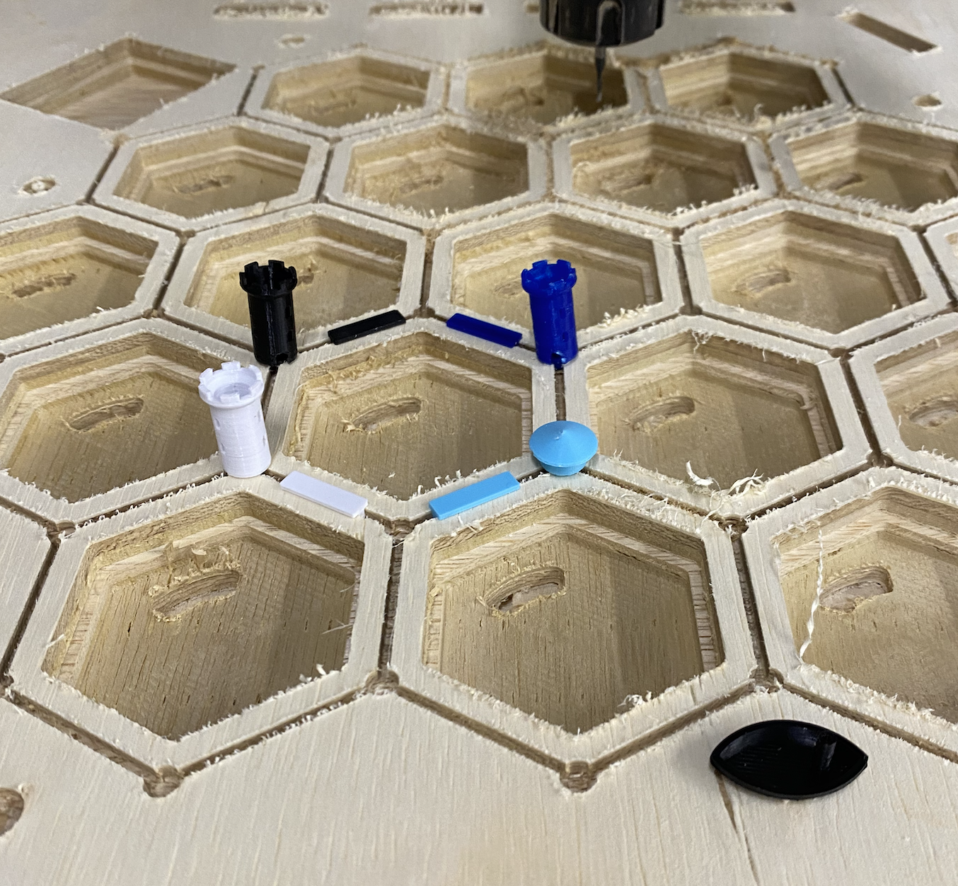 My 3D printed game pieces are below, I tried using dark blue and gold filament, but they came out a little weird/uneven. The gold especially was uneven.