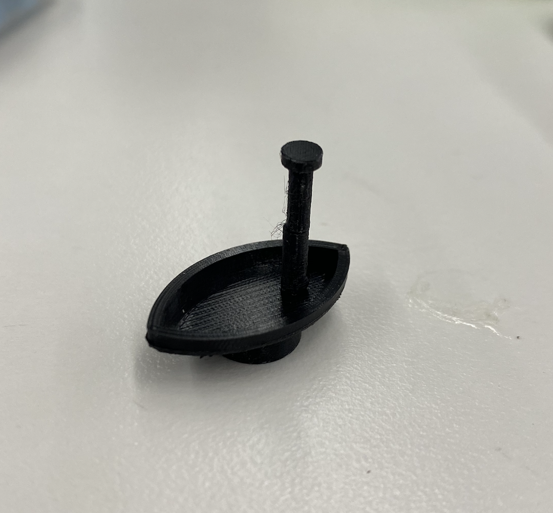 Lastly, I designed an encasing for the PCB electronics board. First, I milled out and created all of the electronics board. Then, I measured approximate areas and depths to sketch out the enclosuer in cad. This took a lot of different iterations, especially since I had to create a movable button to press the button on the PCB board. Joon also gave me a really help recommendation to actually print the button part, which invovled creating 2 pieces. This allowed my part to be printedd on a flat face, as opposed to a raised button edge. After a lot of trial and error (like 5 different prints), I finally found a way to design it that worked for me. Noteably, I attached the button enclosure at the very bottom with one layer of 3d printed material. Then, after the printing was complete I was able to successfully remove the material with a thumbtack and make the button move.