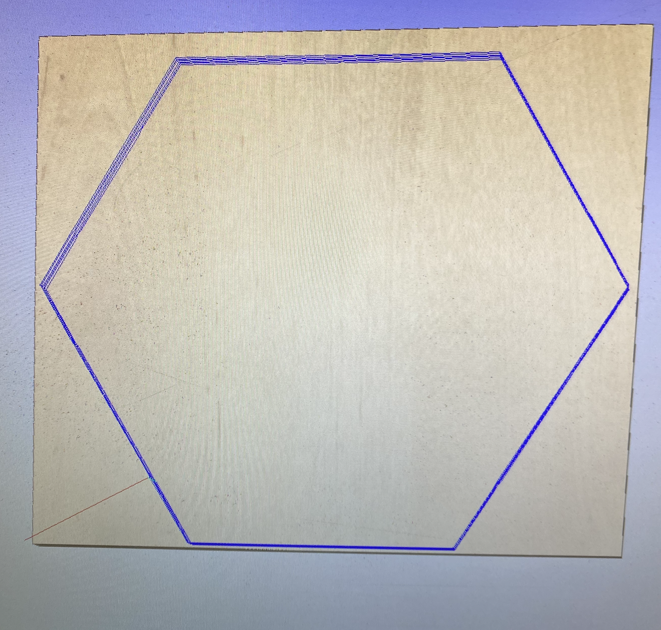 I began by designing everything in Onshape. Again, I have experience with Onshape and it's all online, which made moving between computers convenient (when I had use programs on the shop computers). I started out by designing the individual hexagon insets. There were two nested pockets in the hexagon. The lower one was for the electronics/LEDs to rest, and the upper one was for the resin pieces to rest on. I also slotted a hole in the center for wires to pass through. When I first designed it, I actually created the wrong number of sides, making a pentagon instad of a hexagon.