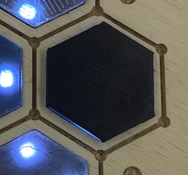 I wanted to cast the hexagonal pieces out of resin, putting little 3D printed pieces and shapes in it to signify which resource the hexagons were. The players would put the hexagons into their appropriate slot before playing, dependent on the LED color generated by the microchip.