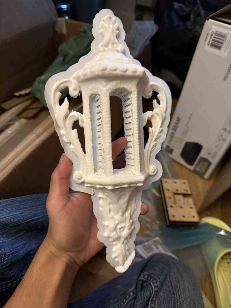 But because the model was a surface and not just a manifold, it couldn't properly ascribe a thickness to print to certain parts of the sconce! Jeff had suggested doing multiple scans of the inside and outside of the sconce but I didn't want to spend more time on it, although this would have fixed my issue most likely.