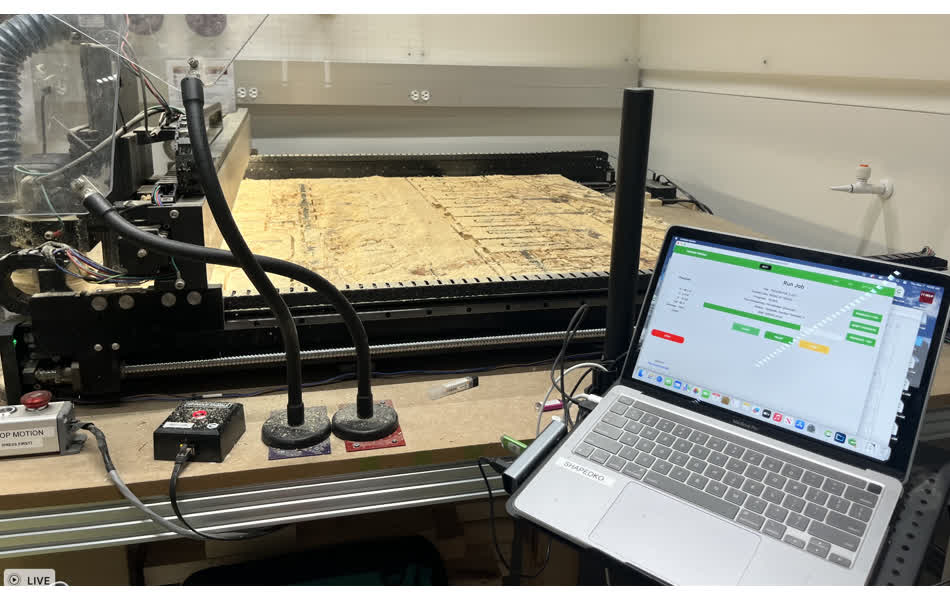 We set the origin, used screws to fix our OSD board in place, and ran the job on the Shapeoko. It took four and a half hours and two tool changes.