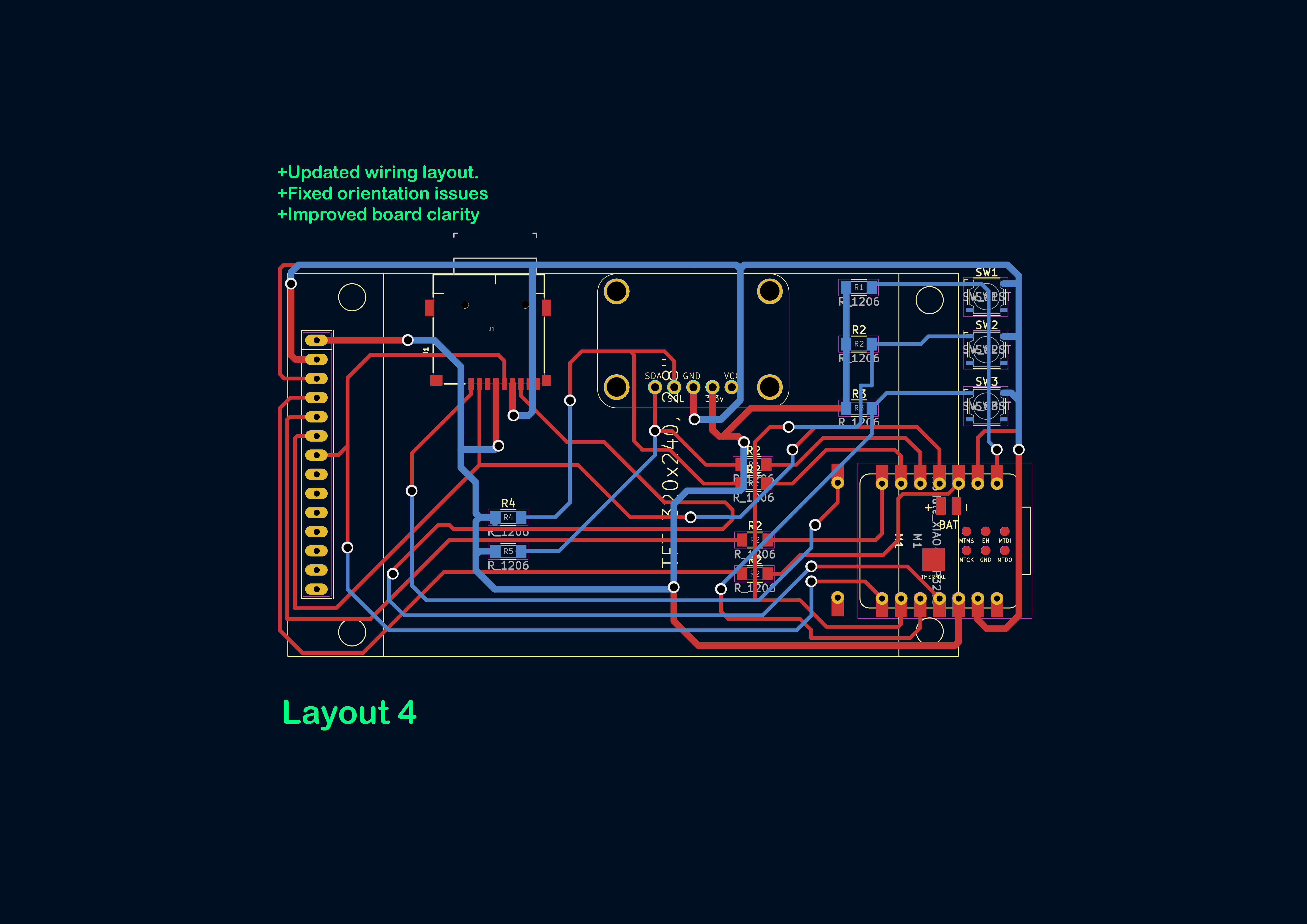if I had to redo this project, I would use a breadboard from the start to test the feasibility of it before going into milling. I would essentially firstly test the components based on the most finalized breadboard layout then I would start by wiring up the whole scheme before moving onto PCB milling. This would allow me to test functionality without committing to a finalized solder which possibly may damage the board or components. This also elimanted the need for using male-female connectors which would eventually add to the height of the board.