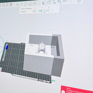 Using Rhino, a 3D model of a stylized Cleopatra funerary mask was created. The model included intricate details to capture the essence of the ancient design. After the design was finalized, a 3D print of the mold dish was generated, which would be used to make a silicone rubber mold.