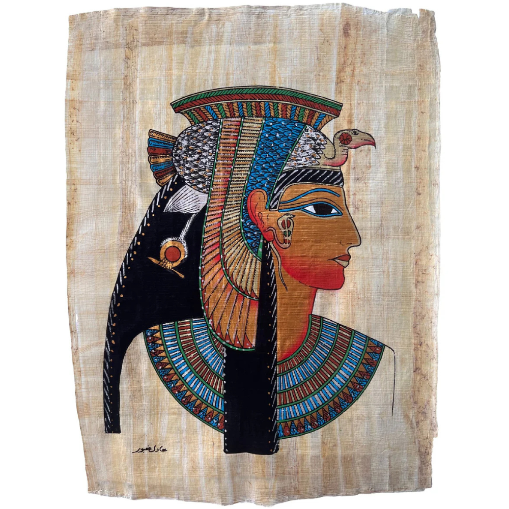 Queen Cleopatra VII, the last ruler of the Ptolemaic Kingdom of Egypt, was a powerful and astute leader known for her intelligence, diplomatic skills, and political alliances. Fluent in several languages, she was deeply involved in governing Egypt, expanding its wealth, and securing its independence through strategic partnerships with Roman leaders Julius Caesar and Mark Antony. Cleopatra used her influence to maintain Egypt’s autonomy amid Roman expansion, embodying a rare blend of political and cultural power. Cleopatra's ability to navigate the complex political landscape of Rome allowed her to secure alliances that protected Egypt’s sovereignty for as long as possible. Even after her defeat and tragic death, her story has endured as a symbol of resilience, intellect, and the enduring allure of one of history’s most enigmatic figures. Her physical depiction varied across civilizations: Egyptian portrayals showed her as a divine, regal figure with traditional symbols of royalty, while Roman depictions often emphasized exotic beauty, aligning with their narratives of seduction and conquest. These contrasting images reflect her complex legacy as both a powerful ruler and a figure of fascination, blending myth and reality.