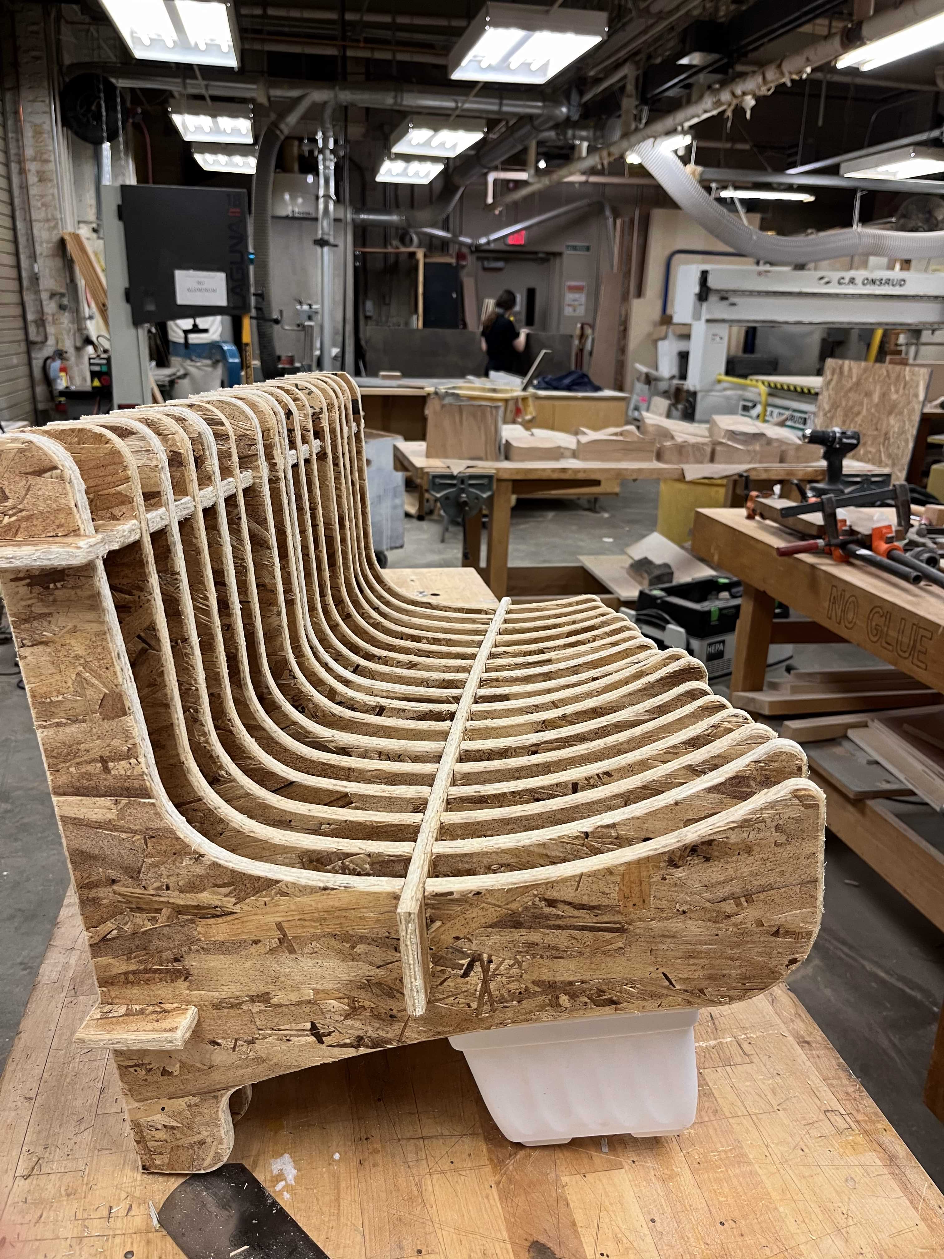 This week, the objective is to make something big out of OSB using a large-scale CNC machine. In a way it’s like week 2 with the laser cutter, only bigger. This means a big emphasis on parametric design and understanding the machine’s limitations.