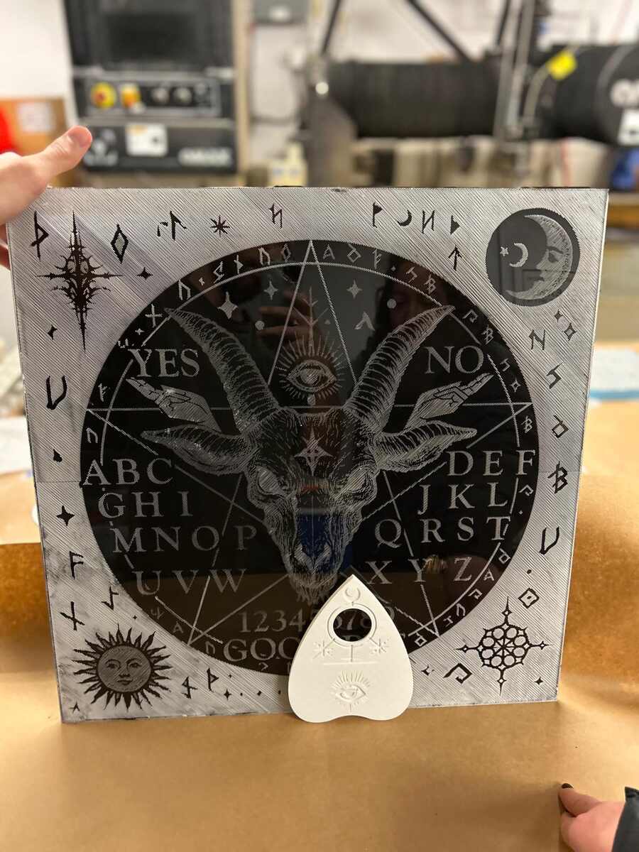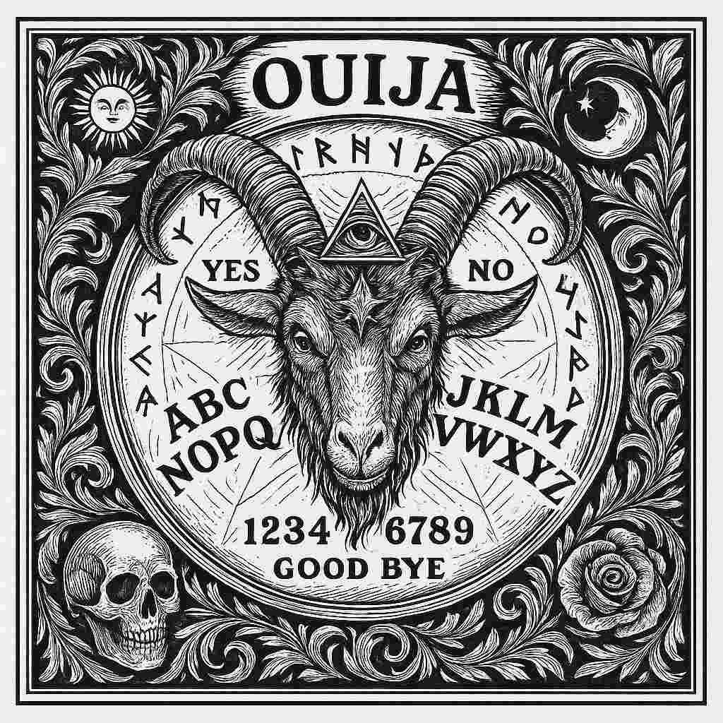 The board team focused on the visual language of the Ouija surface: typography, symbols, layout, and how the planchette reads letters as it moves. The goal was to create an engraved board that feels both legible and unsettling, tying together the cursor, candles, and table as a single graphic composition.