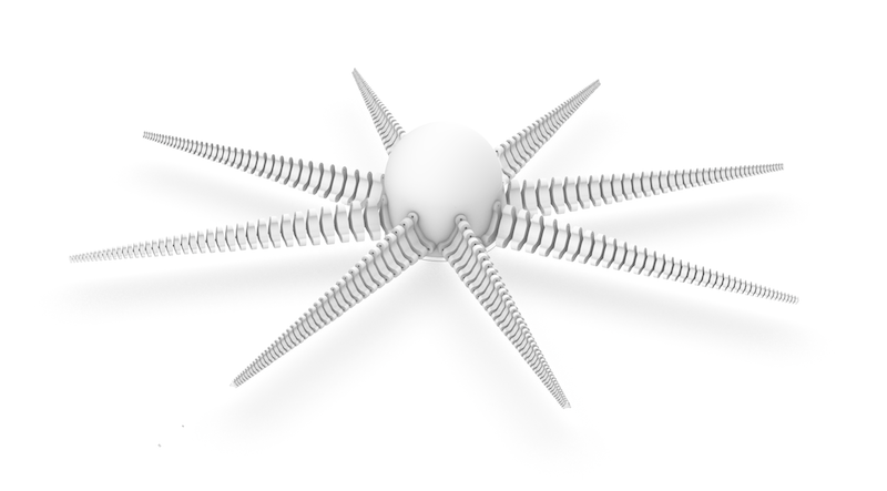 Nov 16-22: Fix tentacle geometry and settle on exact size and print 8 of them. Wire cables through. Test on a basic frame with a dowel to see analog movement.
