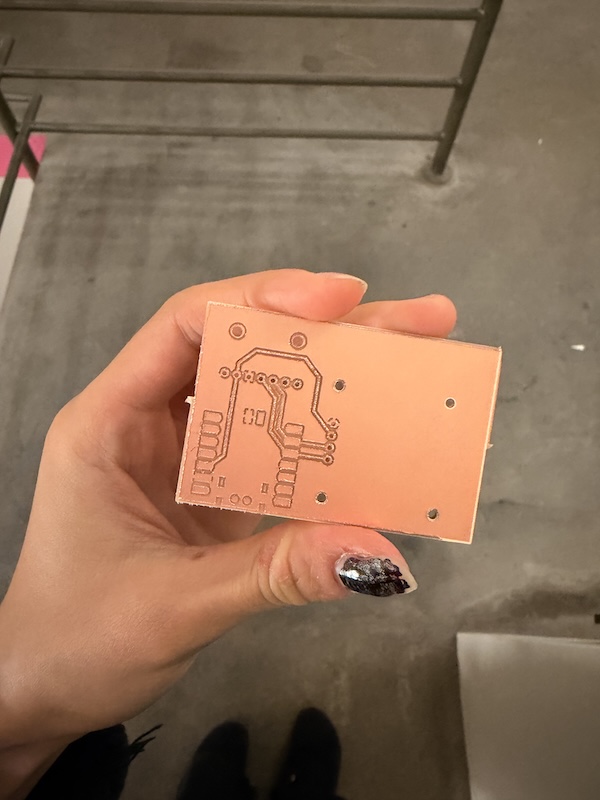 Then I set it up on the Carvera and milled my PCB. I think perhaps the endmill was reaching the end of its little life, as my traces were a little rough.