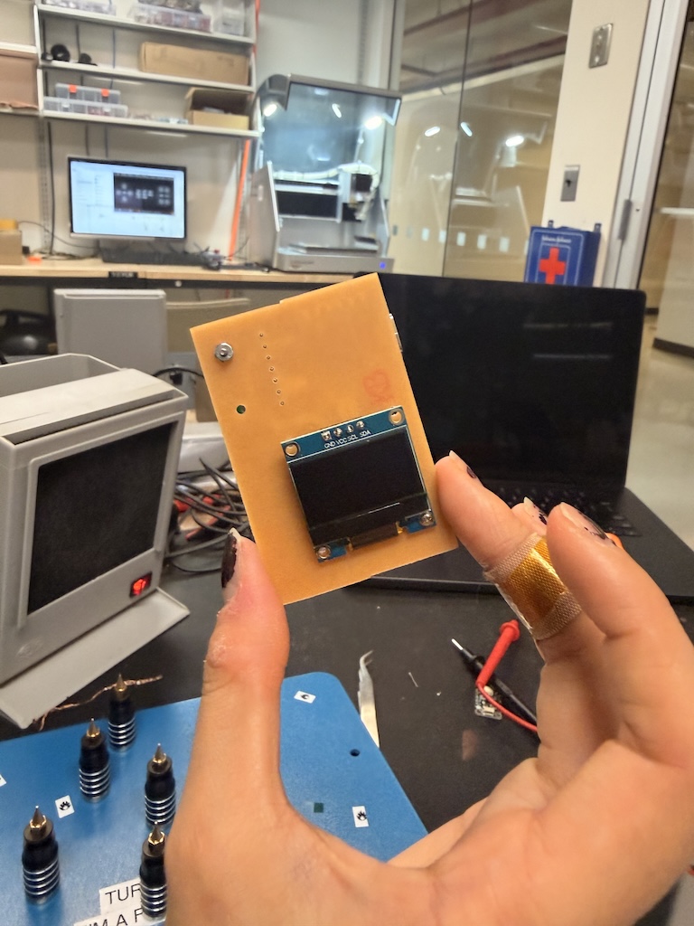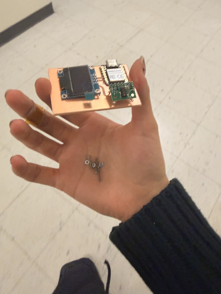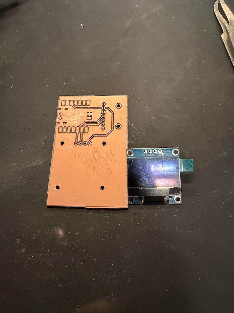 Alas. Maybe you noticed before me, but it appears my connector in Kicad was inverted and I didn't realize, so my screen would not fit on the way I had designed it. So, I got some header pins and decided to put the screen on the back. I think this makes sense as well, so you can move the whole sensor and see the reading on the back.