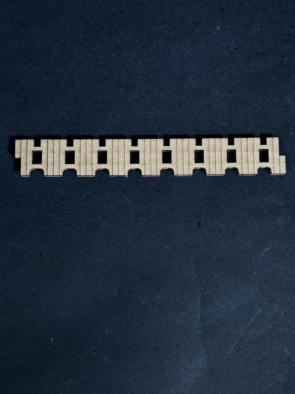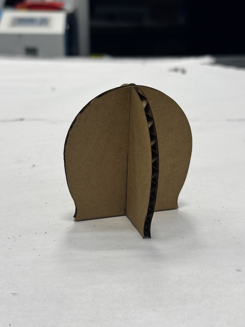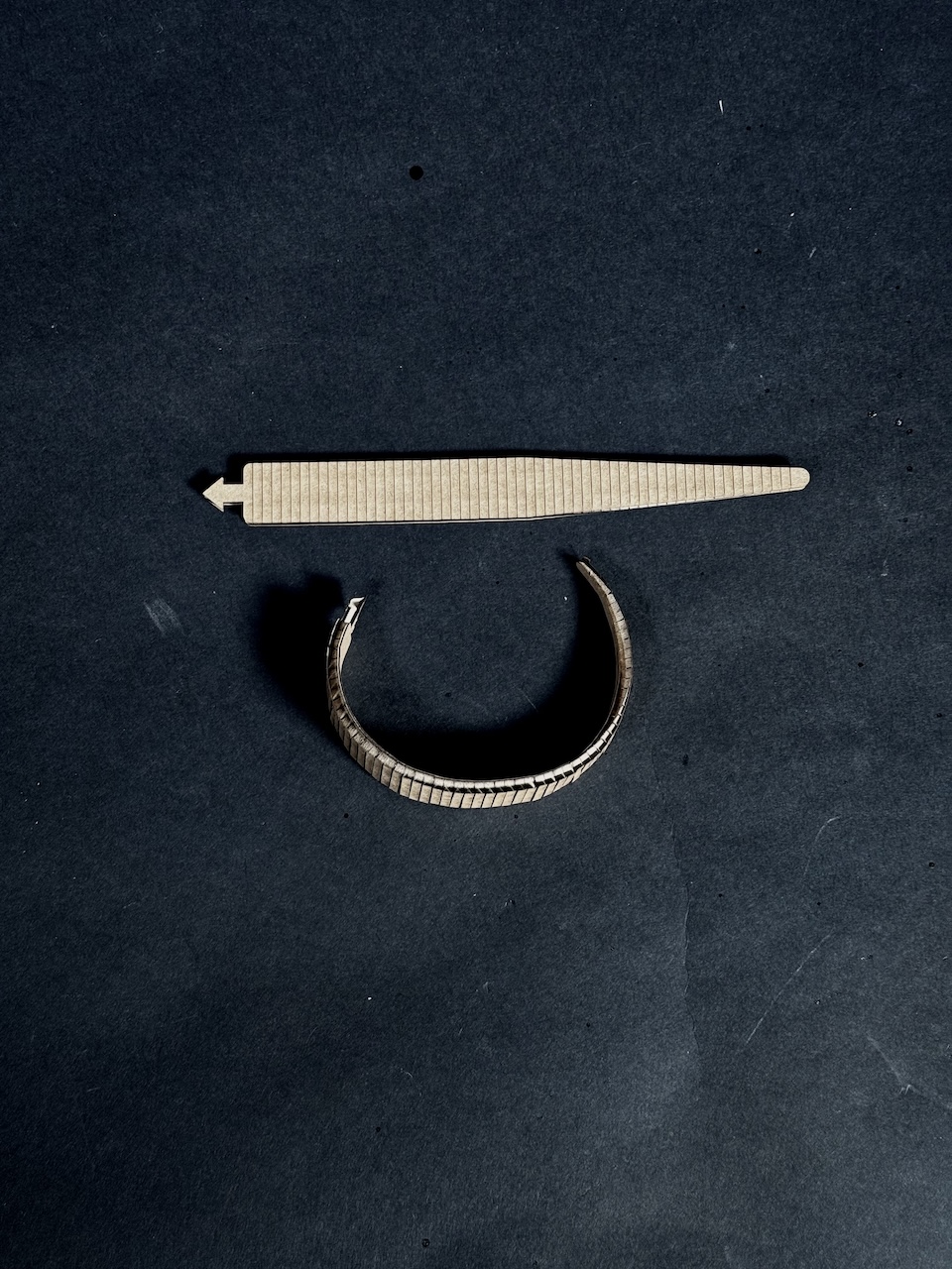 So, I created this piece, with lines to score to make it curved, as well as holes that are wide enough for the arrow to fit through vertically, but not horizontally.