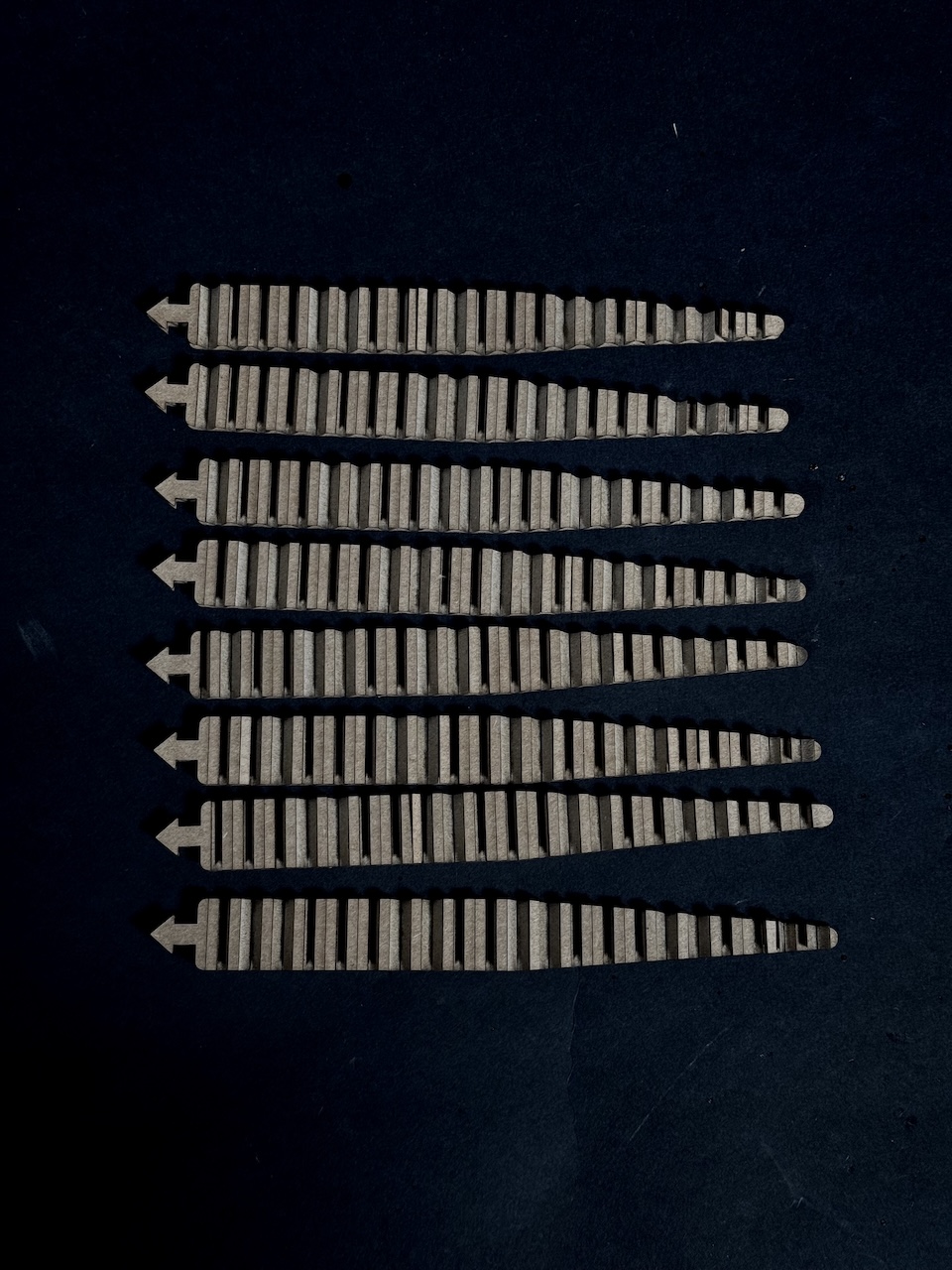 I also wanted the tentacle to curl, so I created a series of lines to score on the lasercutter.