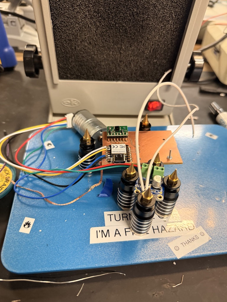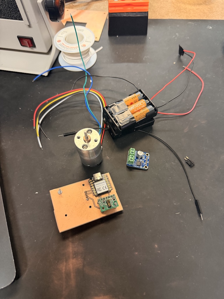 During pcb production week, I wanted to use a motor and driver to prepare for my final project. I tried to use a DRV8847PWPR, but it was so tiny and I was unprepared.. I also did not realize the laser was an option to make the tiny traces at the time. So I ended up browsing adafruit and got a
