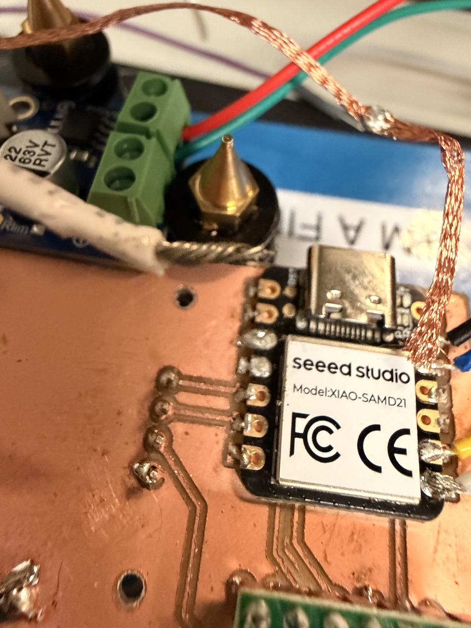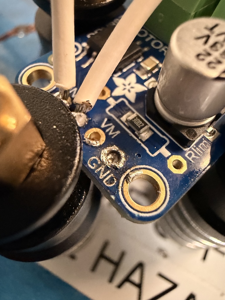 So that was annoying. But I just kind of stuck the end of the wire to the top of it and it seemed ok via multimeter. But then...once I soldered all of those onto the driver, I had to attach to the SAMD21. And this is where I panicked....