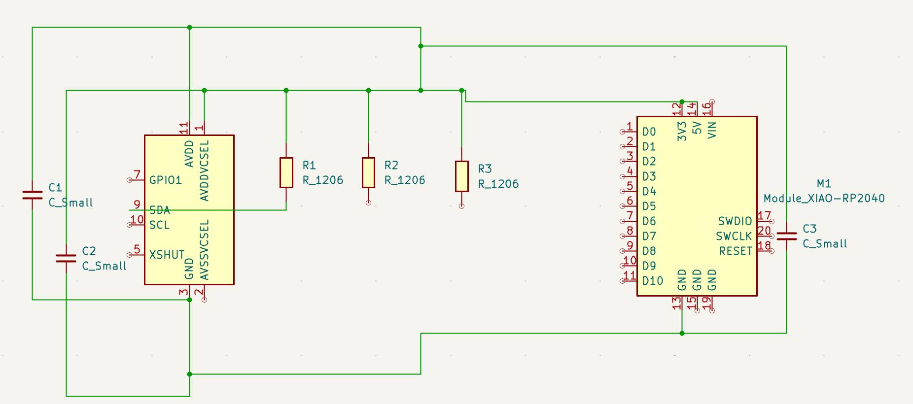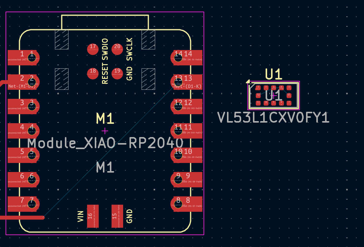 I came across the VL53L1CXV0FY/1 sensor, and so I got started in KiCAD.