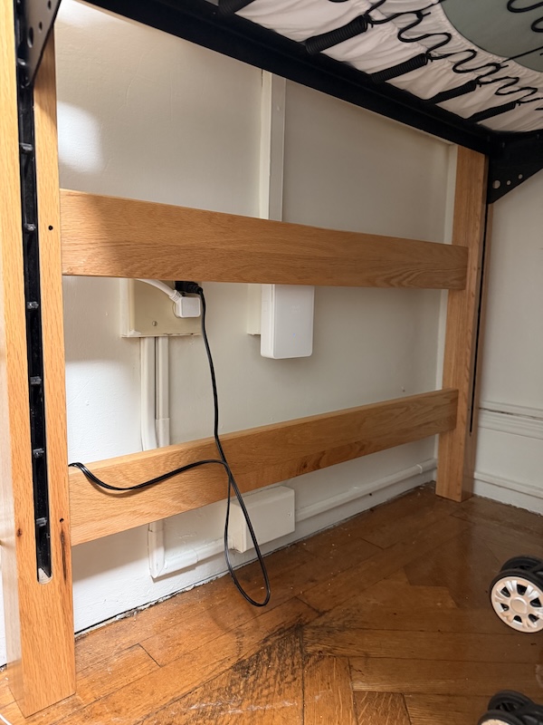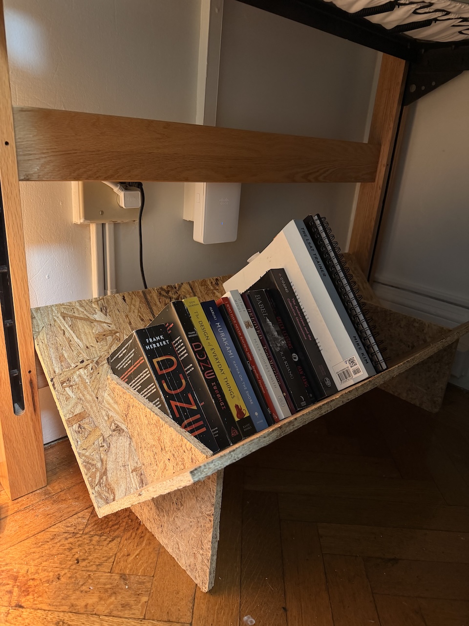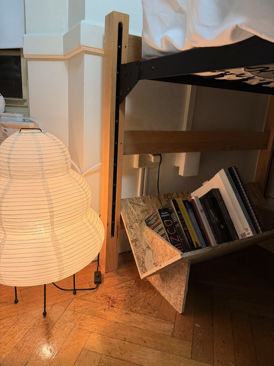But aha! There is a nice little space under my absurdly lofted bed! Perfect for a little bed for my books.