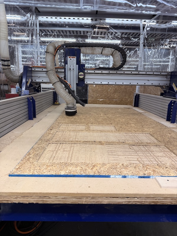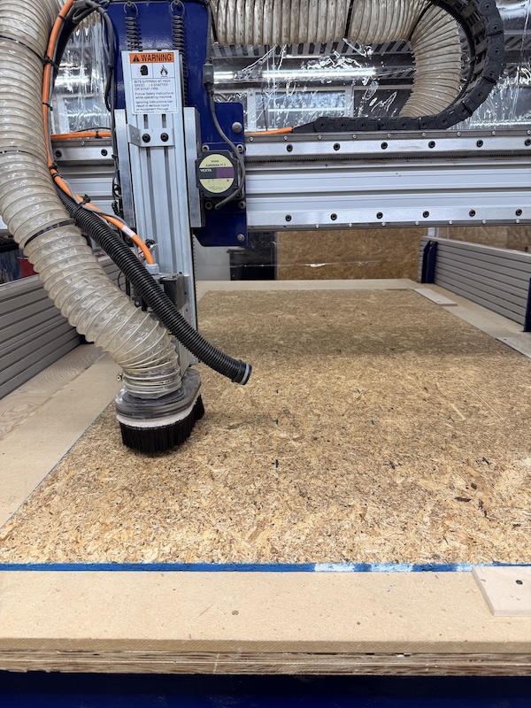 I came in for my session with the ShopBot and set everything up. I zeroed my axes, uploaded my gcode file, and sent it off. I just used a 1/4 up cut end mill for the whole cut. Everything honestly went super smoothly. It only took maybe 20 minutes to cut.