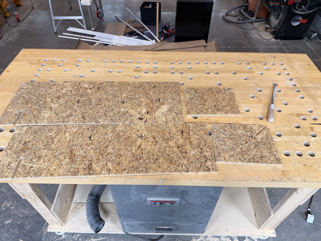 I discovered that I did not make any dogbones... but there were these square chisels, so I used them to clean up my corners in the joints. I also sanded down the faces with an orbital sander.