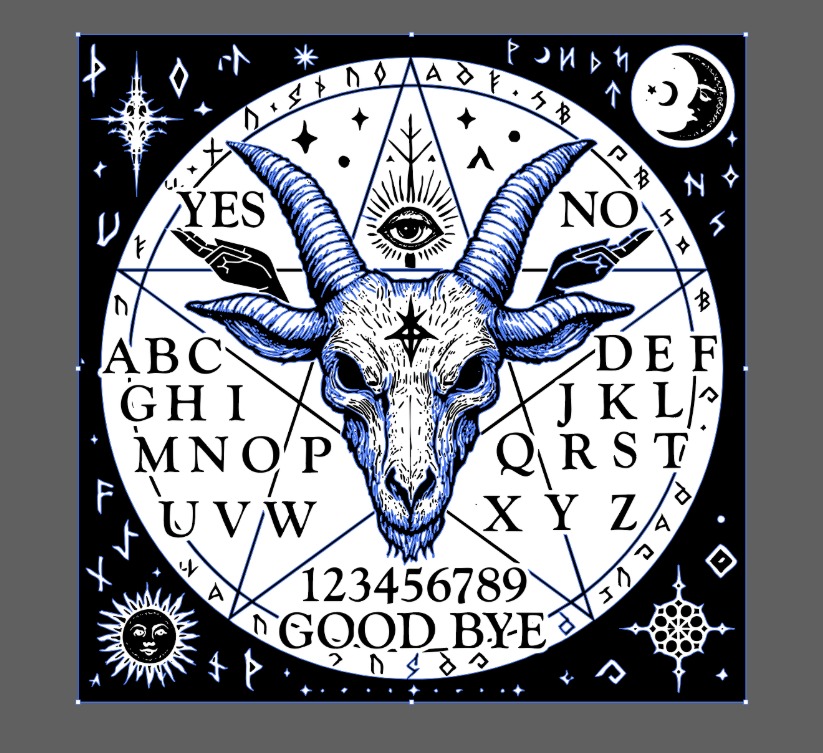 A Ouija board is basically theatrical graphic design pretending to be a board game. The mood needed to be dialed all the way up: ornate, occult, dramatic — but still refined enough to feel intentional rather than parody. To set the baseline, we ordered the cheapest “Spirit Board” Amazon could ship and used it as a reference for scale, atmosphere, and kitsch factor.