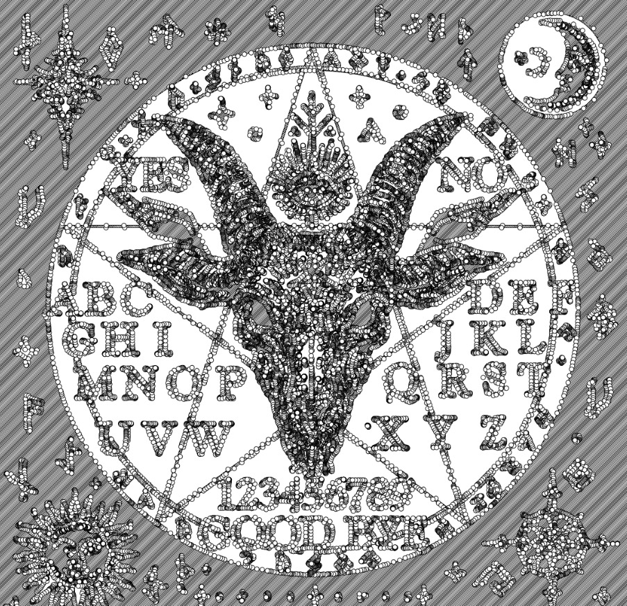 Our board needed to be perfectly square to integrate with the custom table. To iterate quickly, we used ChatGPT to generate initial motifs and compositions and then refined them toward our needs. Full prompt conversation: Ouija Board Concept Prompts (ChatGPT share).
