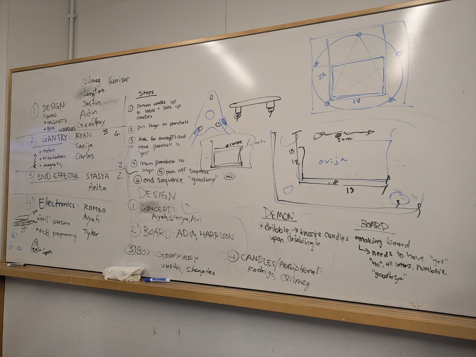 Avi organized us into sub-teams and assigned captains to coordinate dependencies. I ended up straddling multiple teams because the board had to interface cleanly with both the table + gantry + cursor/end effector. I started as “Board lead,” but quickly expanded into integration work: