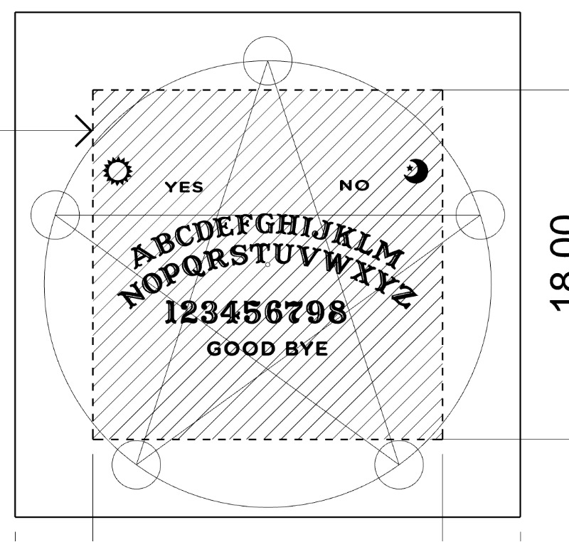 The user interacts with a square Ouija board set into a designed table. You ask a question, place your hands near the planchette, and the cursor glides toward letters/numbers as if guided by an unseen presence. The intent was “effortless haunted object”: the surface looks clean and graphic, the motion feels smooth, and the engineering disappears.