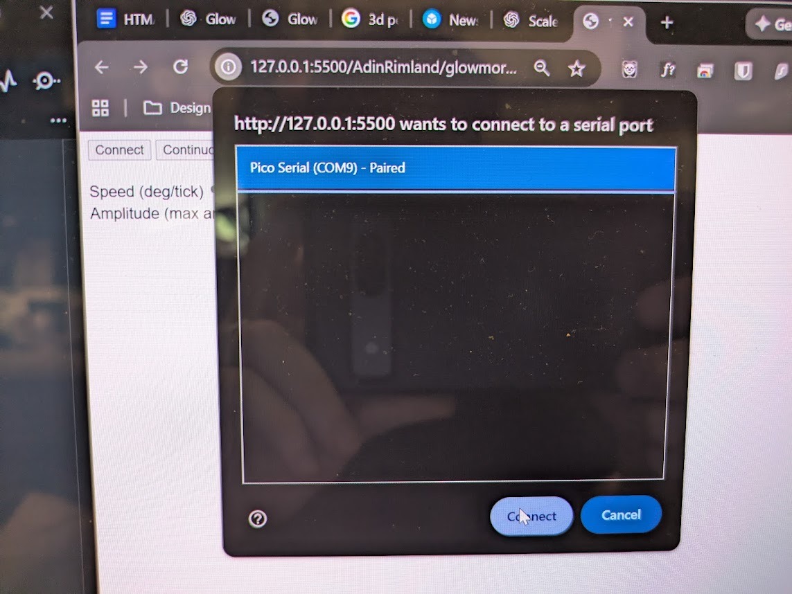 My programming experience is limited, and time was even more constrained. Glowmorph is mechanically complex, and I didn’t want to spend my final weeks debugging avoidable software mistakes. I treated this assignment as a proof of concept: could I reliably command a kinetic system from a browser without crashes, brownouts, or unsafe motion?
