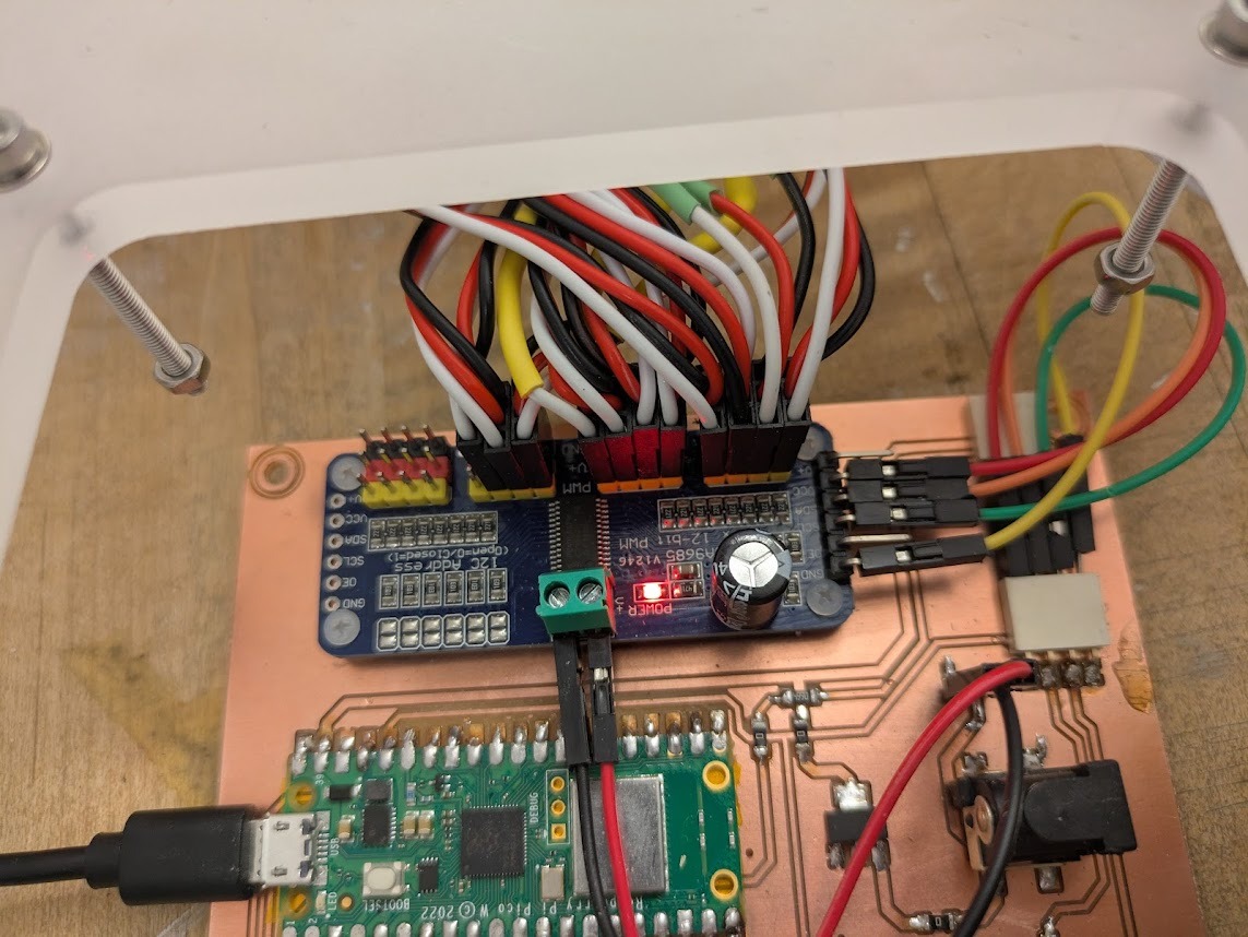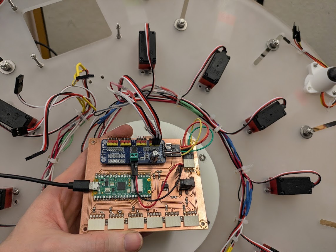 My initial attempt tried to drive all 11 motors in Glowmorph simultaneously. Although the code compiled, the physical system repeatedly browned out, seized, or entered unstable oscillations.