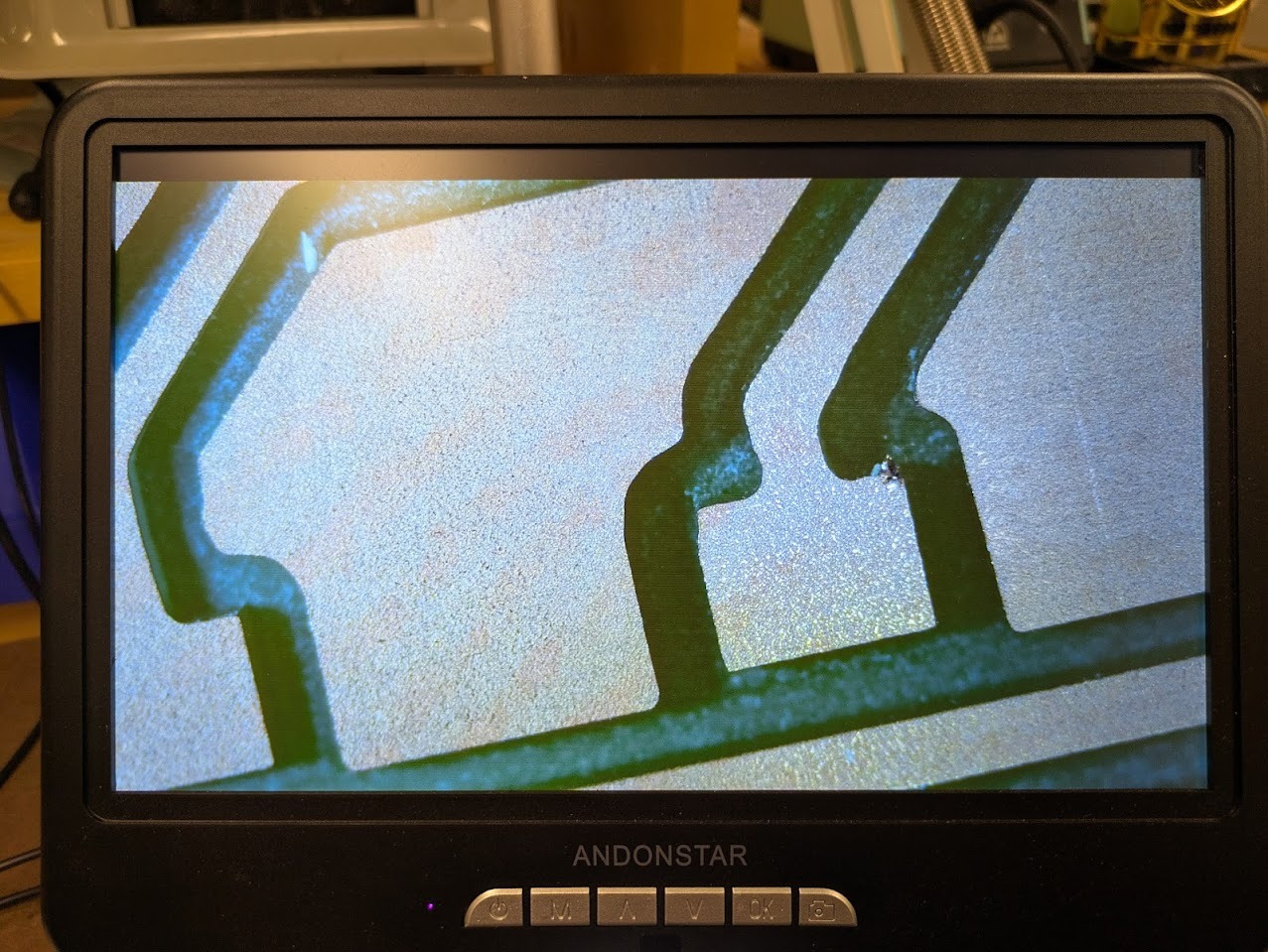 First I had to closely inspect the pathways to make sure that there were no bridges caused by frayed edges or metal splinters connecting paths that were not supposed to connect