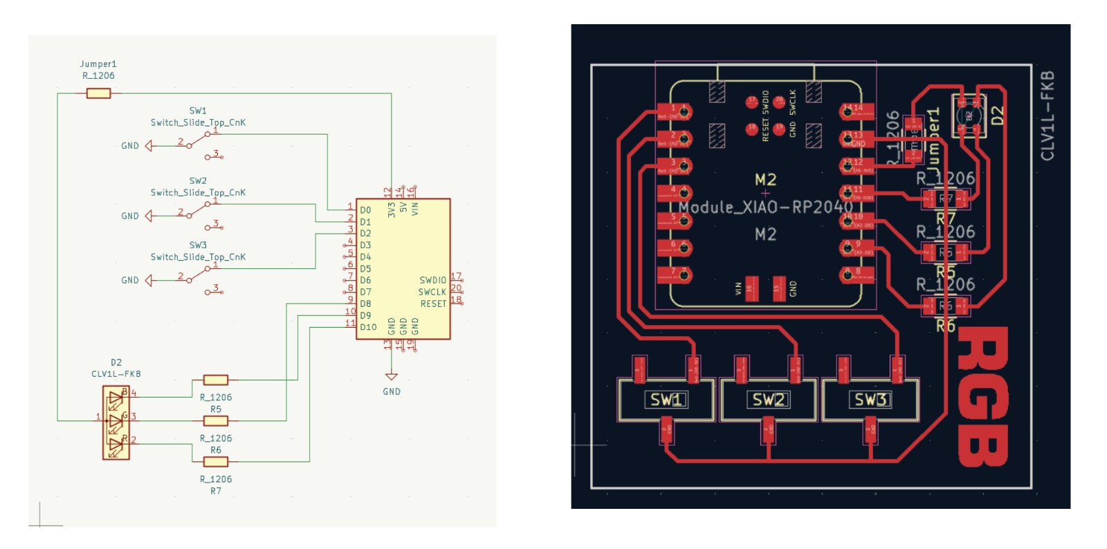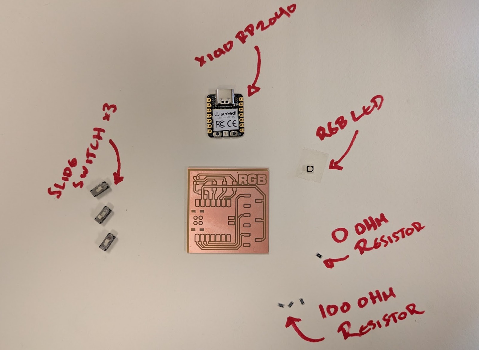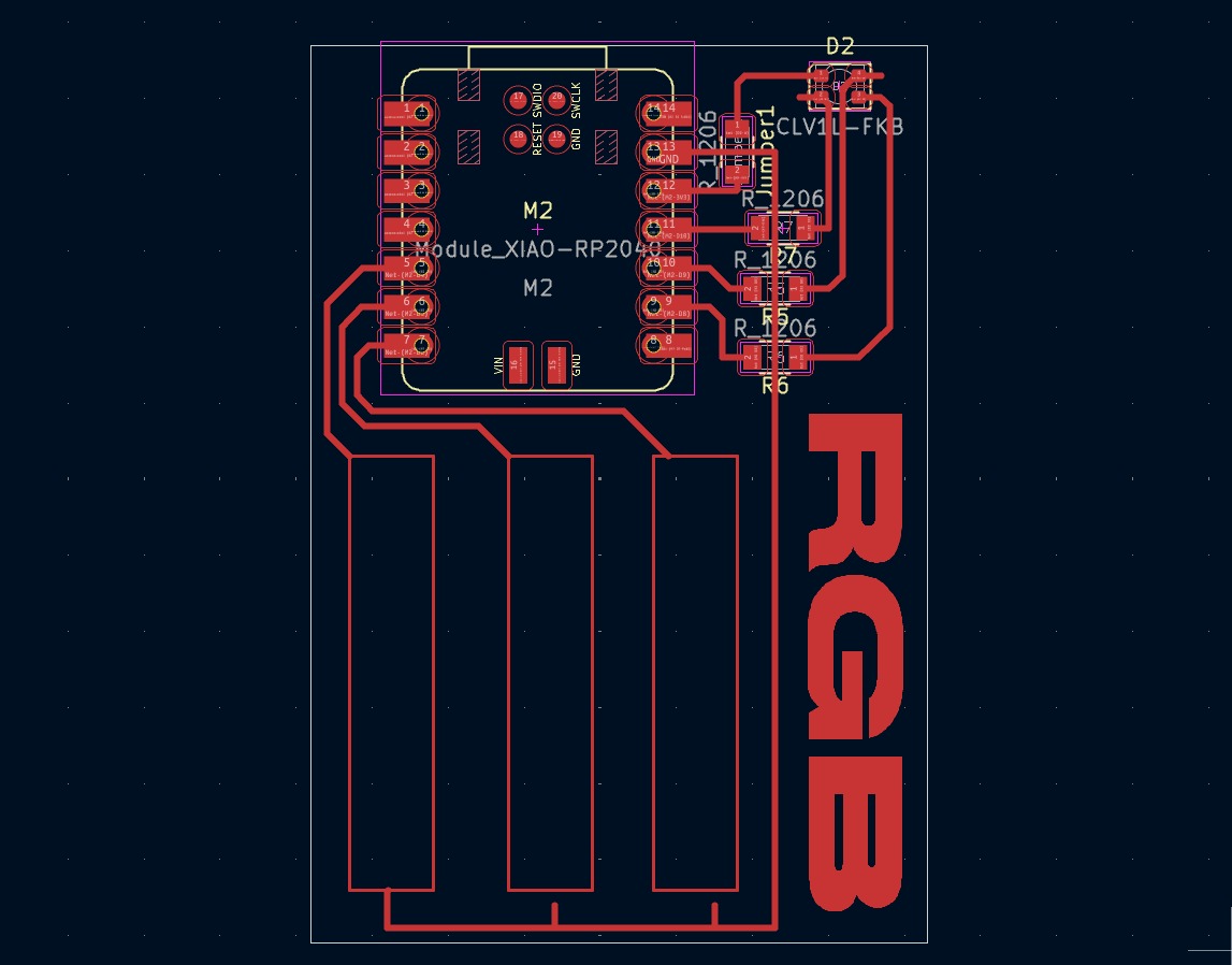 My original idea was to create an RGB light where R, G and B would be mapped to capacitance sensing. I was inspired by Quentin's board . I have run out of time, but I will aim to mill this shortly after class to see if it works.