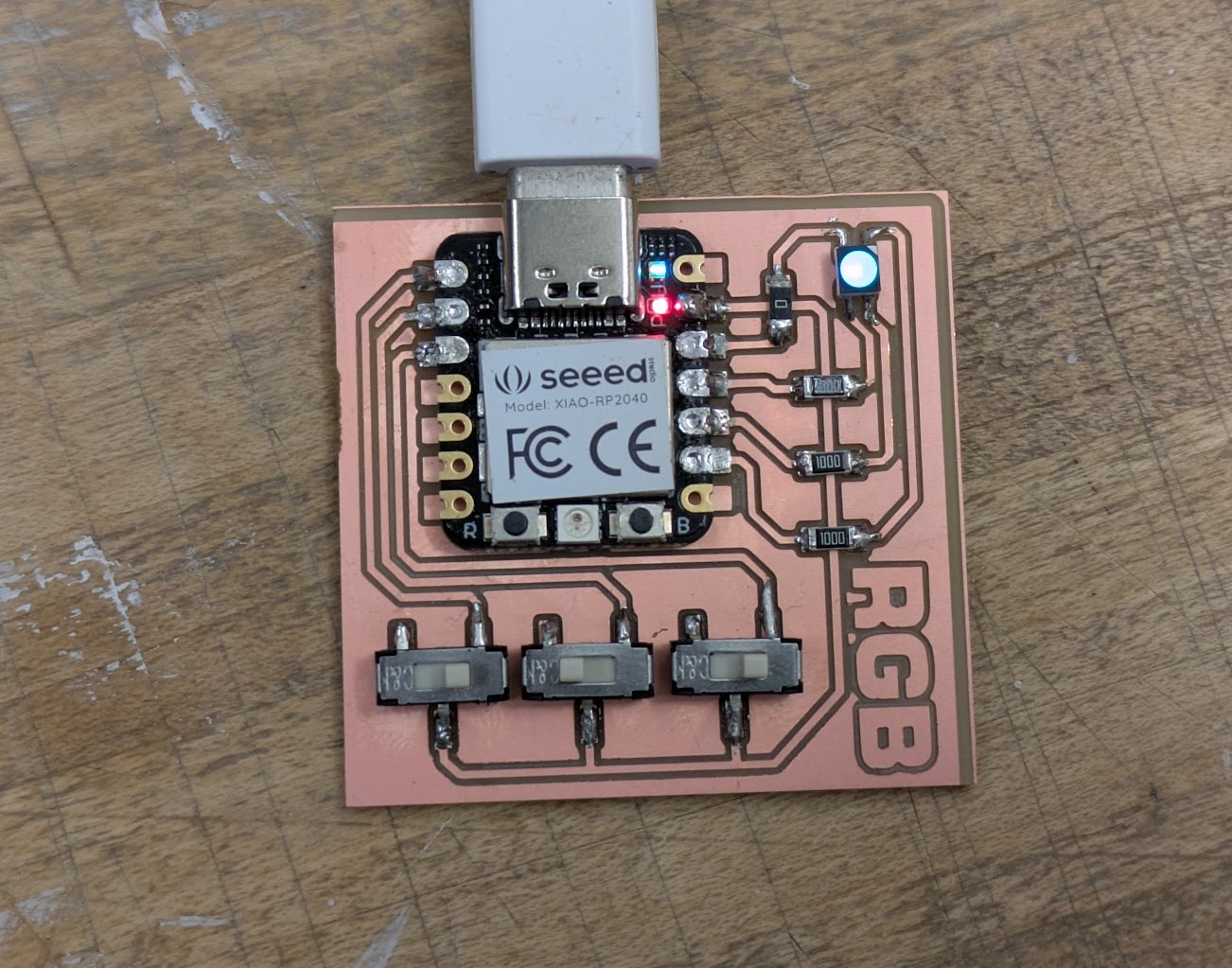 Despite the horrors, I now have a working RGB switch board, and I feel much more confident handling SMD components, calculating resistor values, and debugging hardware-software interactions.