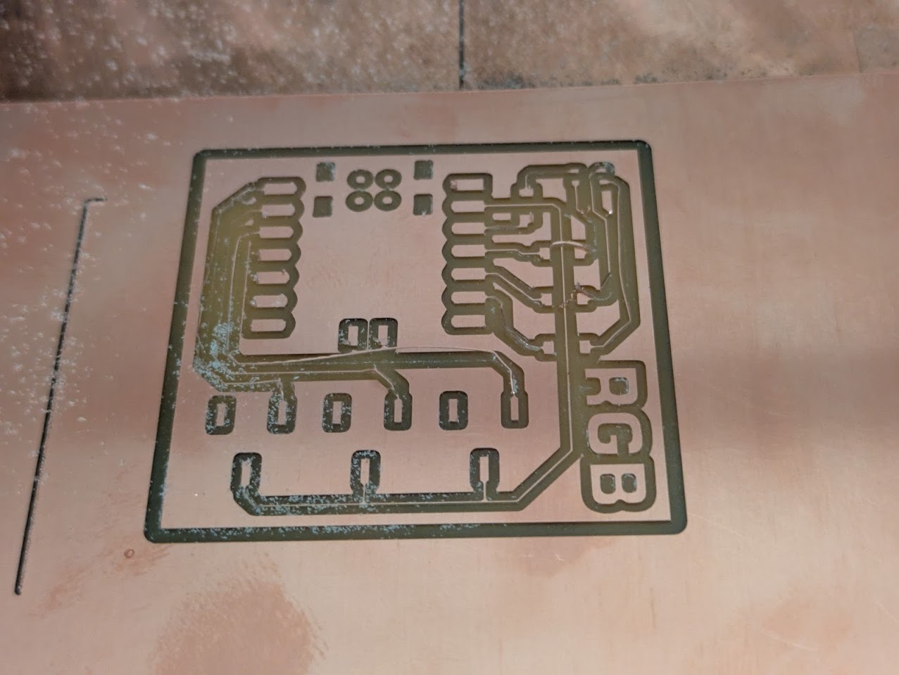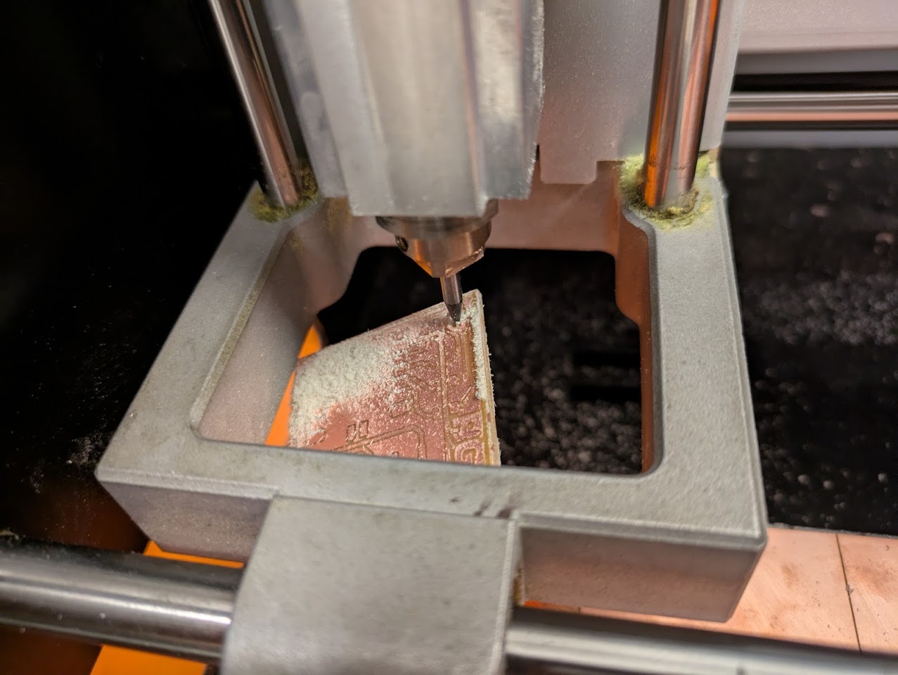 The traces are really narrow. I assume that the 1/64 end mill that I was using was damaged. It's ok. I'll just run another one. At this point, who cares!